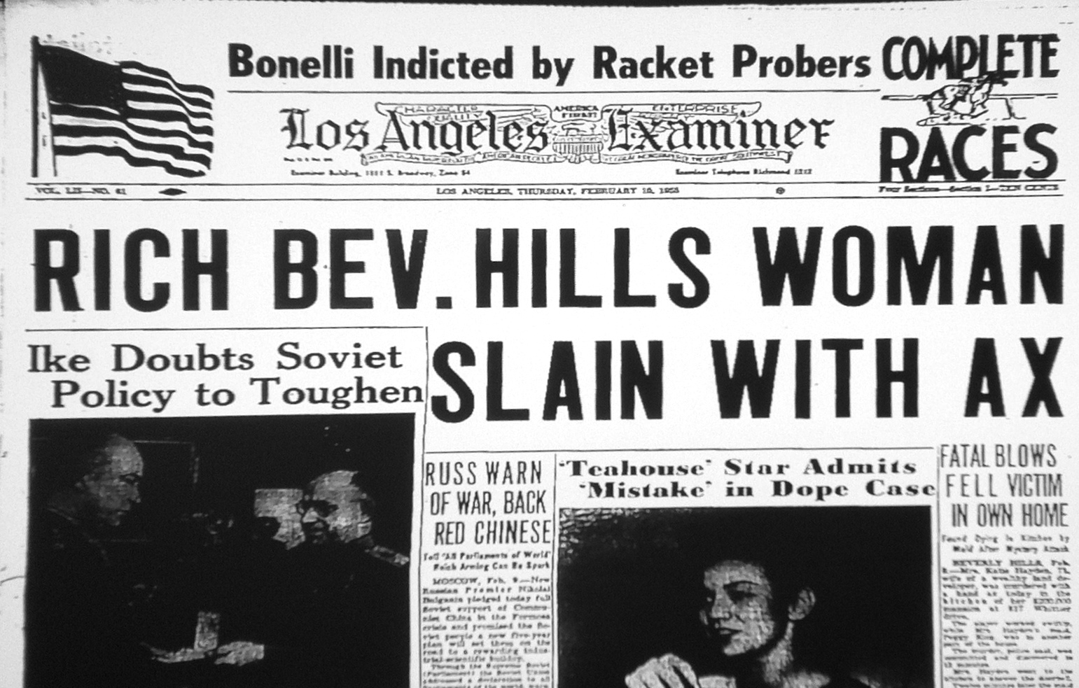 More on the 1955 ax murder on p. 66. Story is about a maid who murders her boss after a fight… over how to cut a roast!