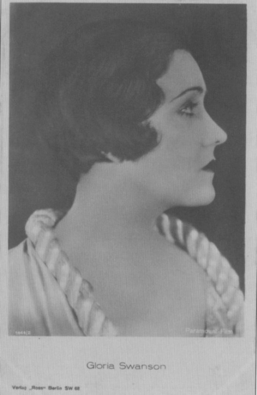 Here’s an early postcard/photo of Gloria Swanson, who would go on to star in her most famous role as Norma Desmond, a faded film star, in the movie Sunset Boulevard in 1950.